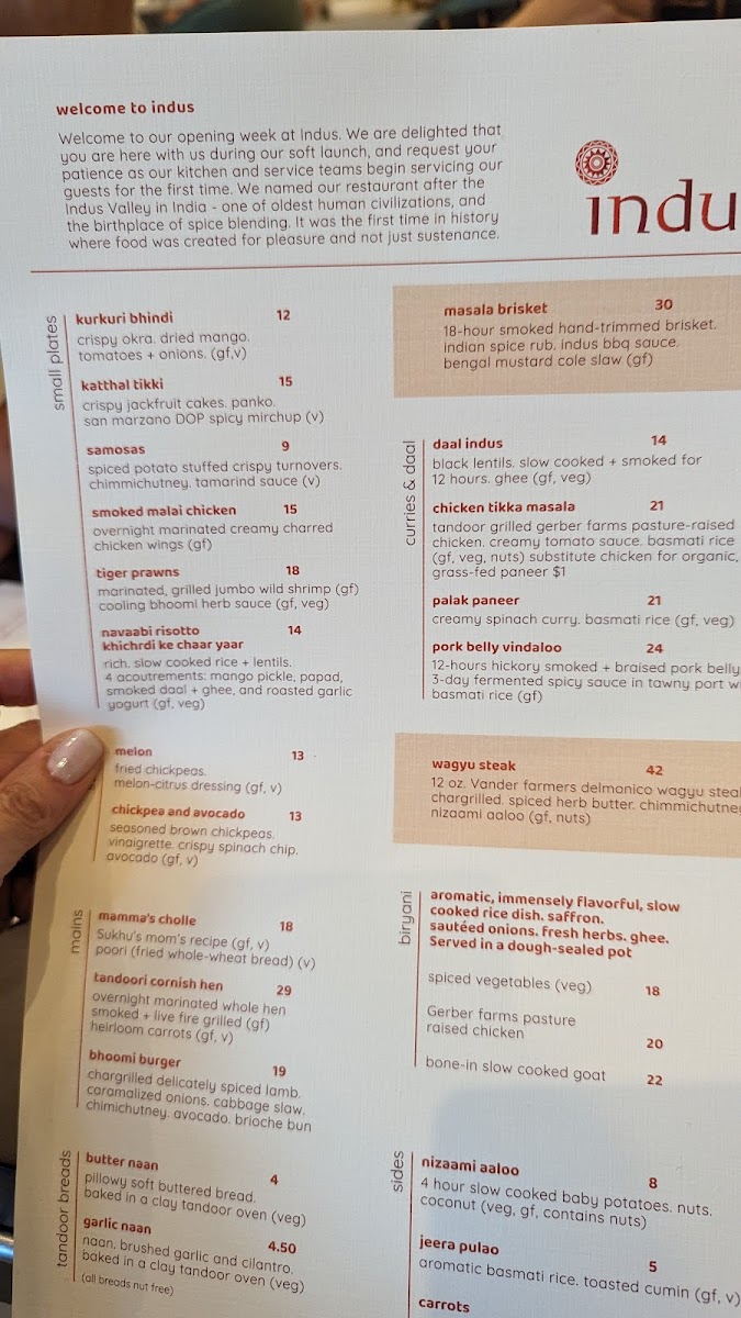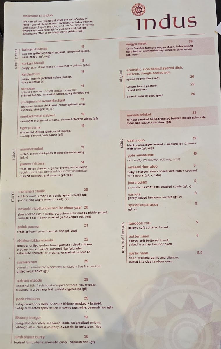 The biryani offerings, including Spiced Vegetable and Organic Chicken, showcase the restaurant’s dedication to authentic flavors, enhanced by pure saffron. Every dish reflects careful craftsmanship, making Indus Progressive Indian a must-visit culinary destination.